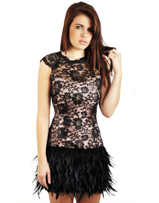 Chiffon lace detail feather dress as featured in The Sun Magazine